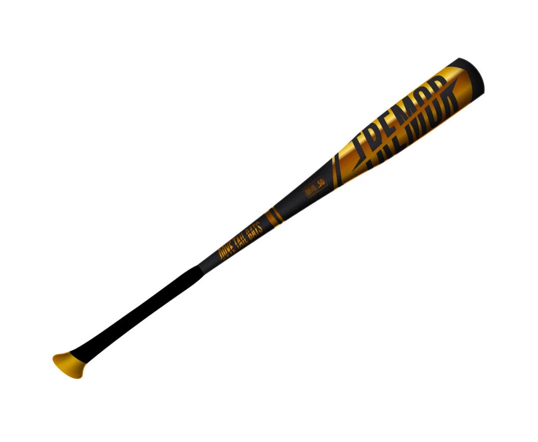 The Tremor is the only alloy bat to feature the ProXR patented knob technology! This bat is a black and gold alloy bat and comes with a black grip and is a BBCOR certified bat. The Tremor is a two-piece composite handle with a alloy barrel. (US PATENT #7744497PROXR)