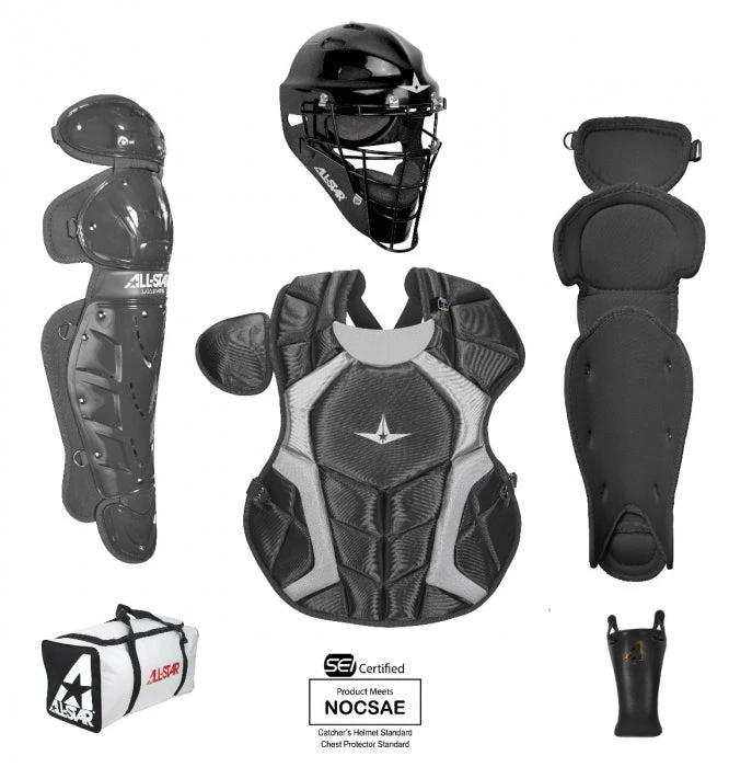 The CKCC79PS, Player’s Series catching kit includes all of the gear you need to take the field and be protected. Included is a MVP2310 Catching Mask, CPCC79PS Chest Protector, LG79PS Leg Guards, a throat guard, and also an equipment bag. This set is recommended for any ball player just starting to catch. Great gear at a solid price.