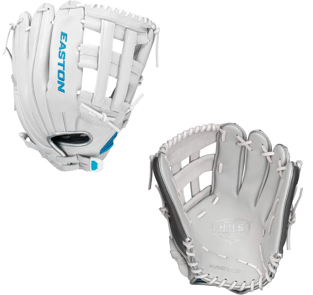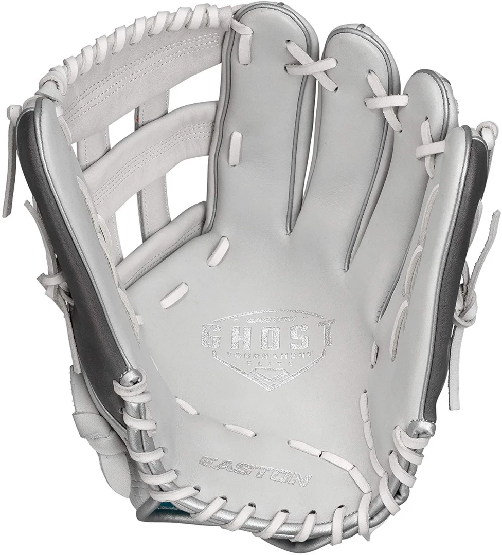 Easton’s® all-new Ghost Tournament Elite Fastpitch Series gloves are built with the exact same patterns as the Professional Collection Fastpitch gloves. These gloves are designed for the high school and travel ball player that might not yet have the hand strength of the college player, but still demands a glove that will stand up to daily use. The gloves are handcrafted with Diamond Pro Steer™ USA leather and a supple leather lining for added comfort and feel. The Quantum Closure System™ is fully adjustable for a tighter, more secure fit and optimal control. Professional grade rawhide laces add durability, while the snakeskin embossed leather accents and metallic chrome binding add extra flare.