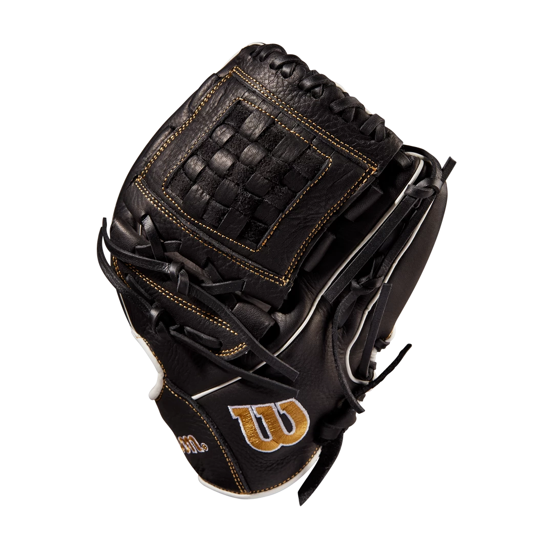 Command the game from the circle with the A1000® P12 12” Fastpitch Pitcher Glove. The Black Full Grain leather with a Closed Two-Piece Weave Web allows you to conceal pitch grips and keep hitters guessing, and the 12” reach is perfect for utility players who move all over the diamond.