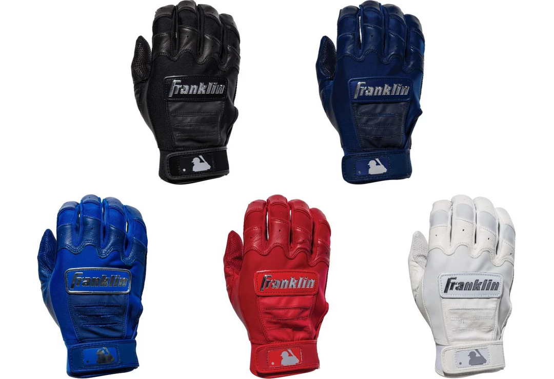 Showcased on-field by dozens of MLB® professionals, Franklin’s popular CFX Pro model has gone full color! A world-class quality Pittards® digital sheepskin leather palm ensures durability, softness, and superior grip at bat, while proprietary tectonic fit inserts accommodate flex across the hand back. Touched with a hint of chrome, these gloves are a must have on the diamond this season.