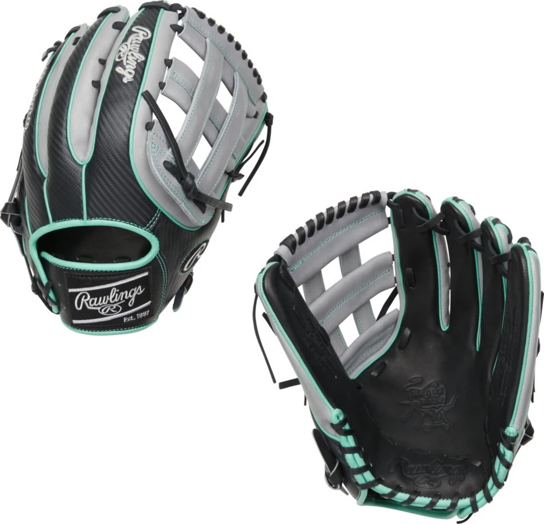 Maximize your range with the Heart of the Hide Hyper Shell outfield glove. It was meticulously engineered to help you reach your full potential in the outfield. Our Hyper Shell back is 15% lighter than traditional leather, and now features a fresh, black carbon fiber design for a stylish, yet clean, look. This look is complimented by subtle mint welting and binding, and gray accents around the web and fingers.