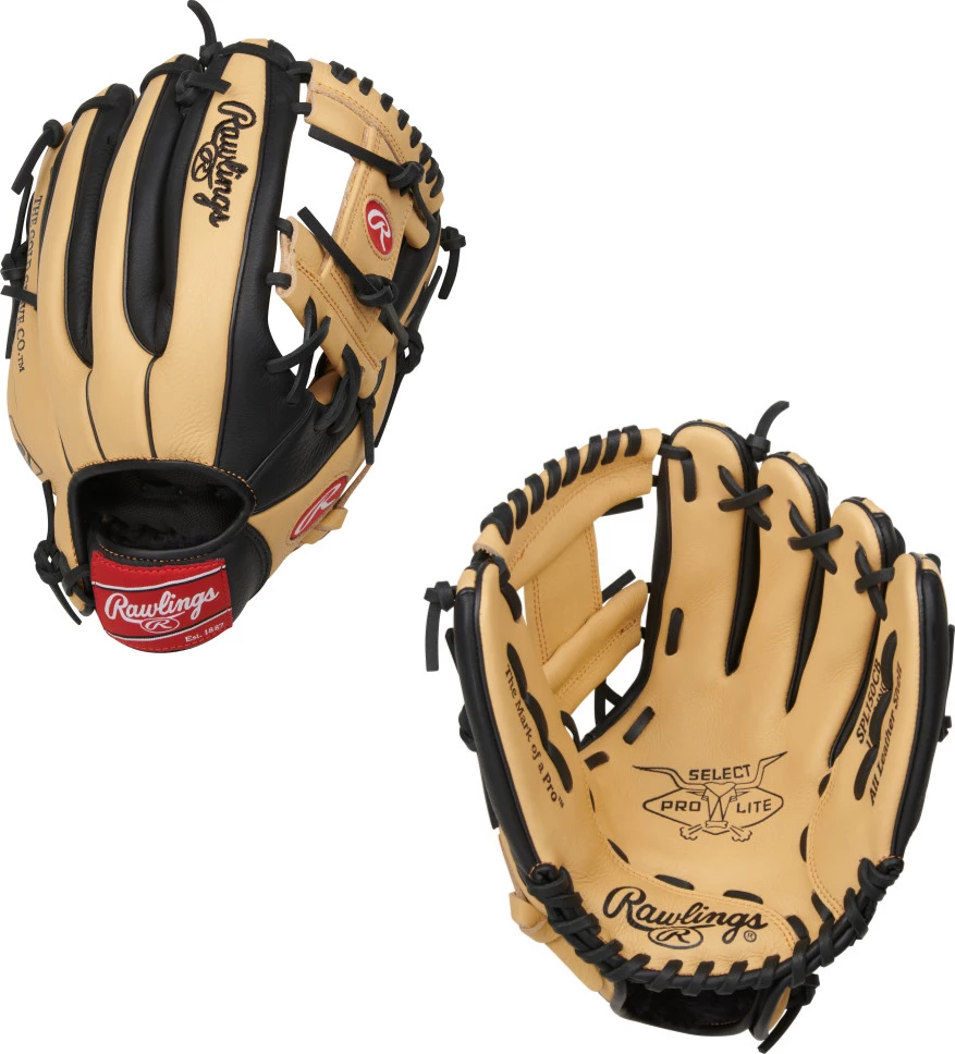 Rawlings’ all new Select Pro Lite glove series offers an exciting collection of a popular pro player designs to give aspiring big leaguers the same glove styling and features of their favorite stars. All of the models in this collection offer Rawlings Youth Pro Taper Fit which incorporates smaller hand openings and lowered finger stalls. This is a perfect solution for the transitioning athlete looking for a pro style model that fits their growing hand size. In addition, the soft, all leather shell construction and palm lining provides a very comfortable feel and added shock protection, making this glove a safe, reliable option for young baseball players. The durable and lightweight textured vinyl design offers players added quickness, optimal balance, and an easy close feel in addition to the 90% factory break in. These gloves are game-ready right now of the box.