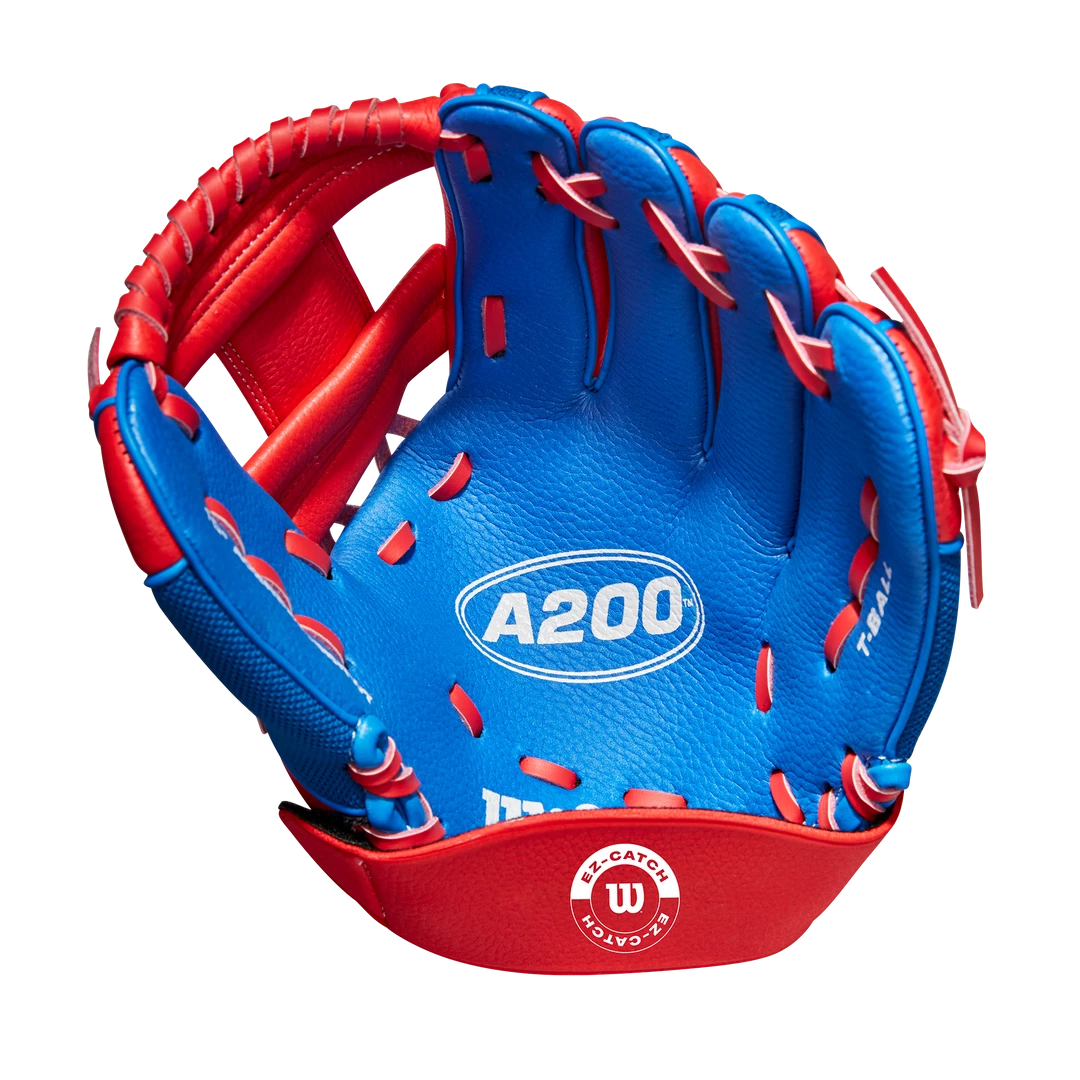 Show your young ball player the ropes with the 2022 A200 EZ Catch 10” Glove. A smaller hand opening provides a secure fit, and the catch assist strap is designed to help new players learn the basics.