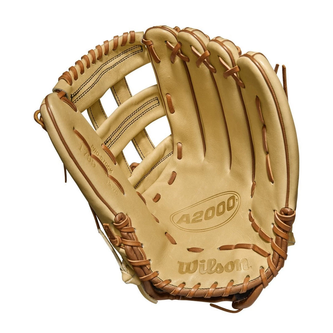 Flash the leather on the outfield grass with the 2022 A2000® 1799, the 12.75” pattern with a long, durable construction designed to range from foul line to foul line. The sturdy Dual Post Web helps to shape the pocket and allows you to go all out for fly balls. The Blonde leather palm and shell pairs with Saddle Tan laces, welting and binding for a clean-cut look on the grass.