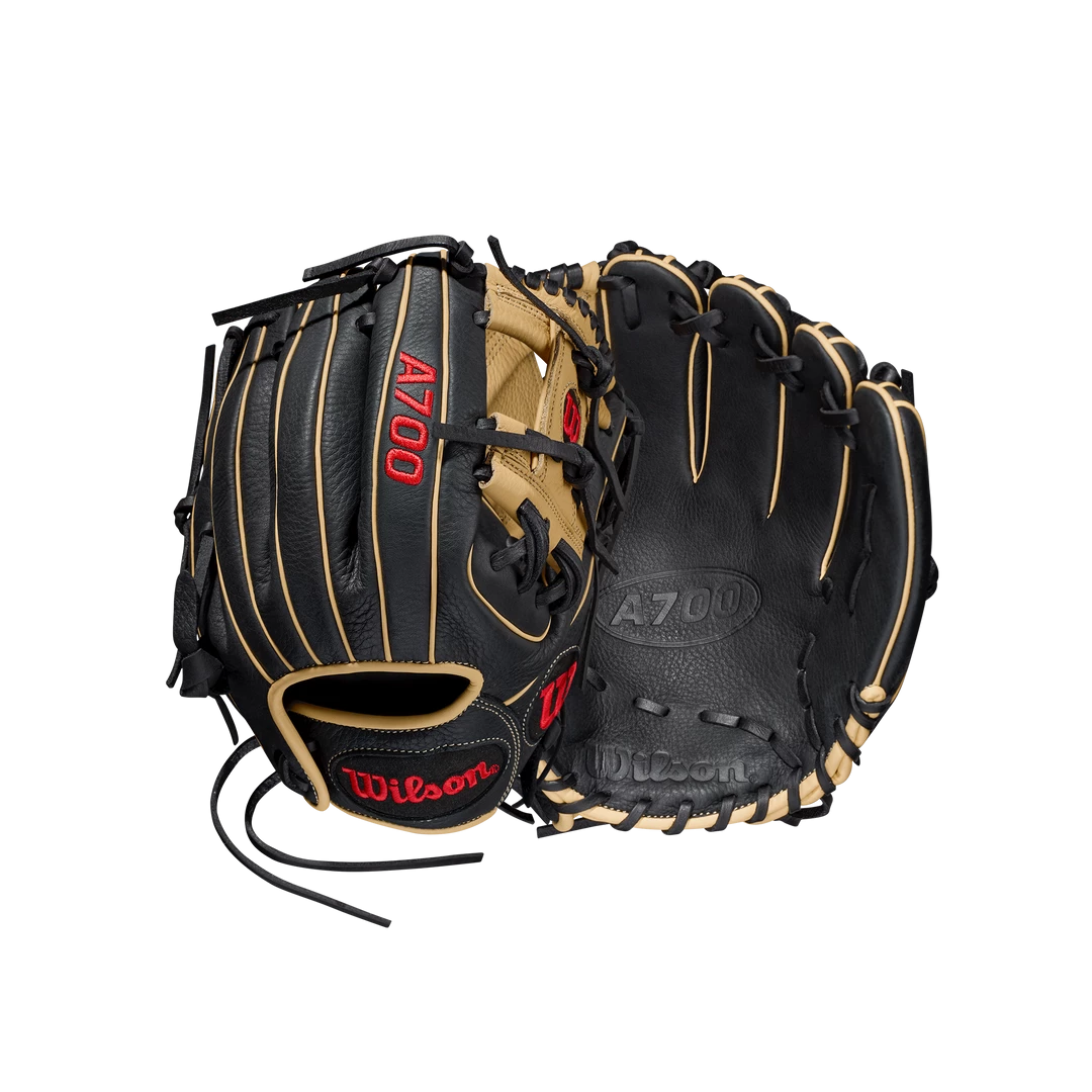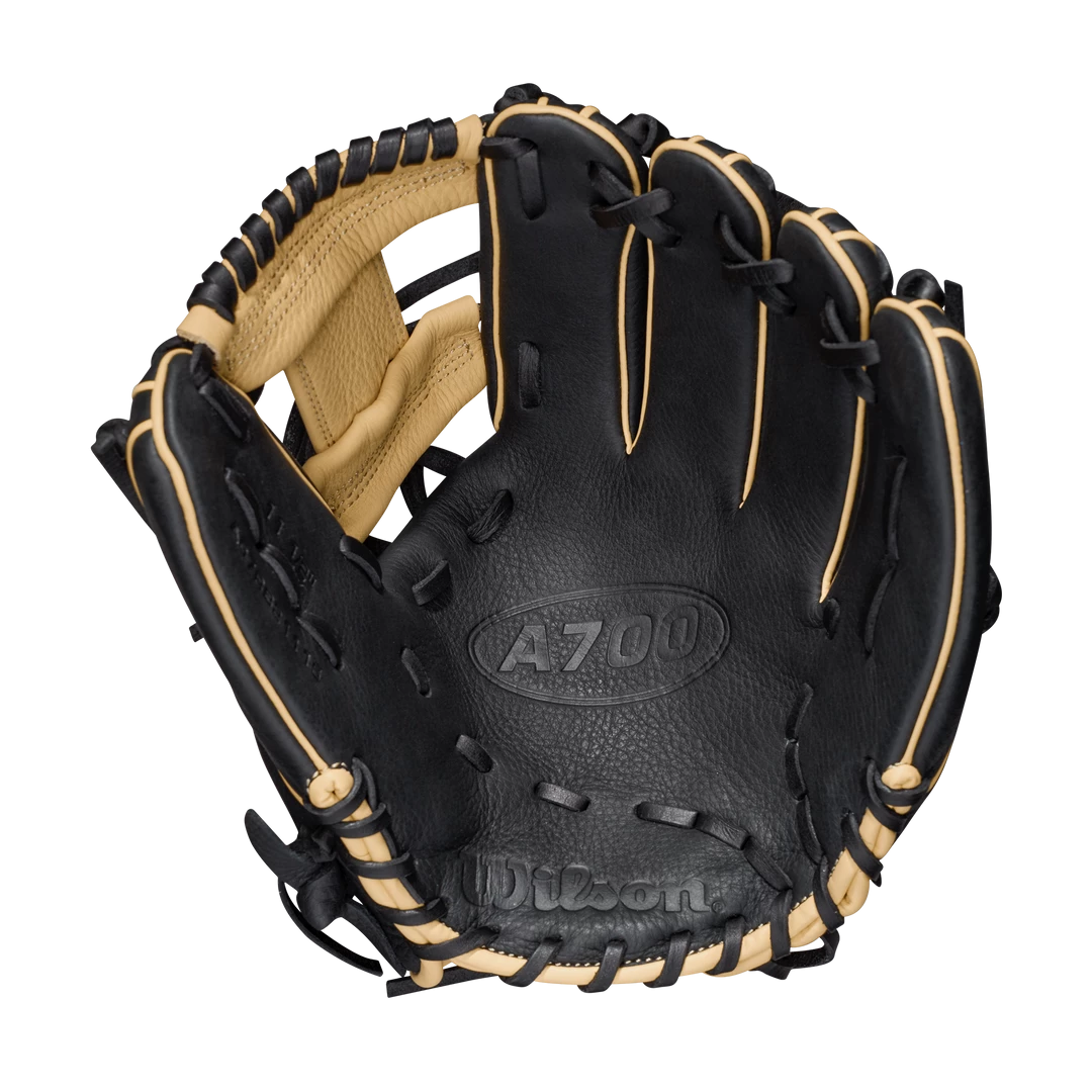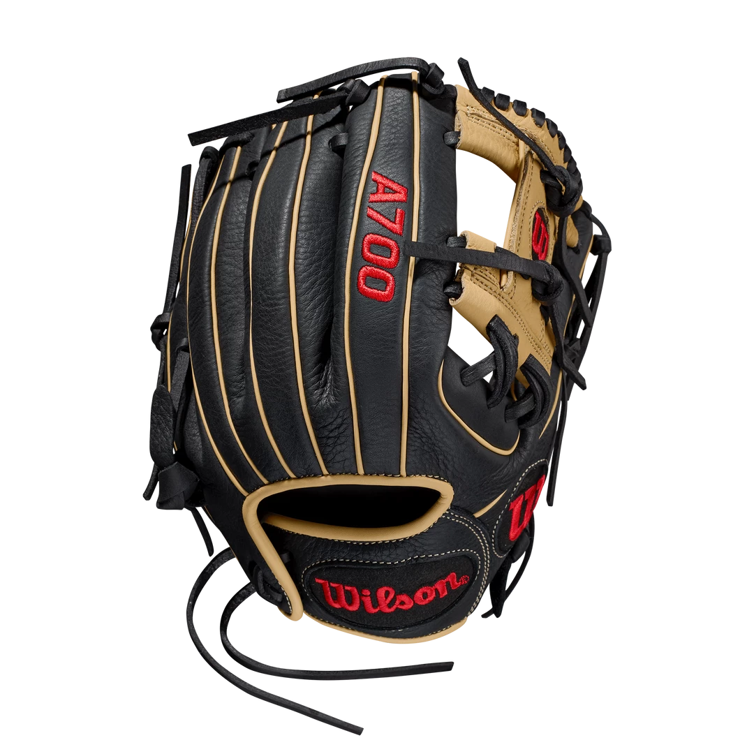 Hone your skills at second, third and shortstop with the A700® 11.5” Infield Glove. Black and Blonde Full Grain leather with Wilson’s iconic I-Web is game ready on day one.