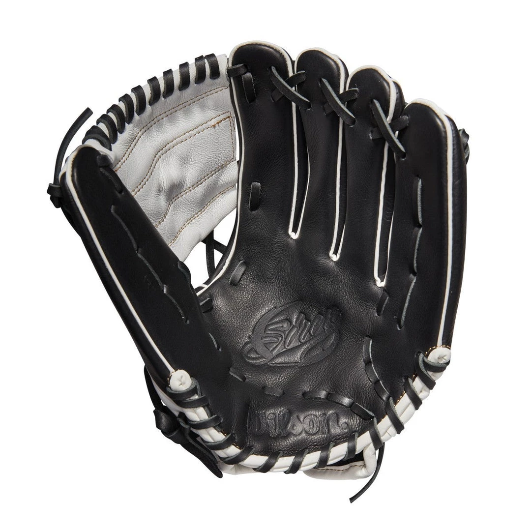 Perfect your infield fundamentals with the 2022 Siren 12” Fastpitch Infield Glove. The Black and White design with a sturdy Modified X2 Web is game-ready. A newly redesigned Quick-Fit elastic wrist is designed to securely fit small hands for ages 7 and under.