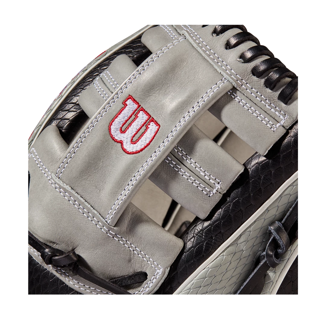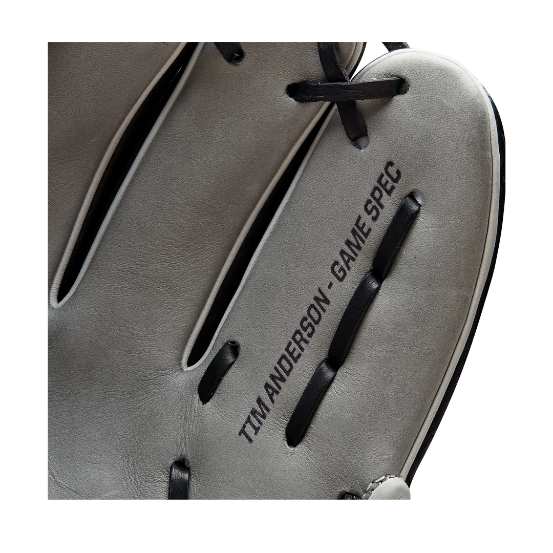 Tim Anderson is always looking to bring some flair to his game on Chicago’s South Side, and his 2022 A2000® TA7 GM is here to make a statement on the field. Black and Grey SuperSnakeSkin™ reduces glove weight while enhancing durability and moisture resistance, and the reinforced H-Web on this 11.5” pattern helps to corral balls all over the infield.