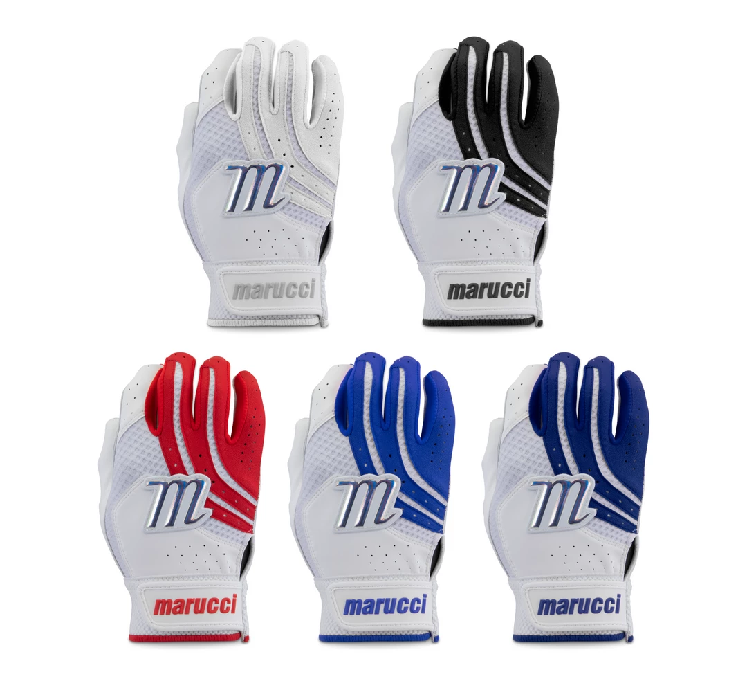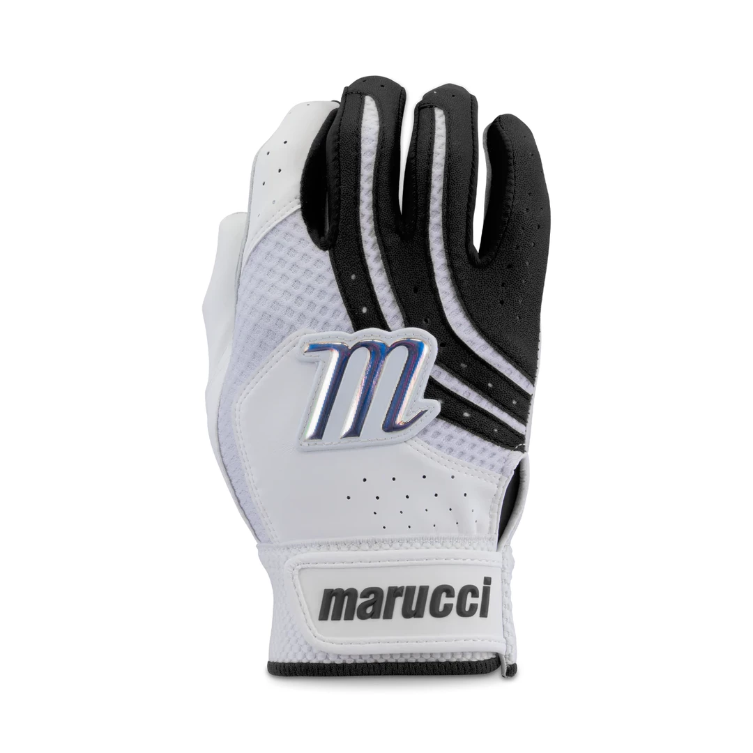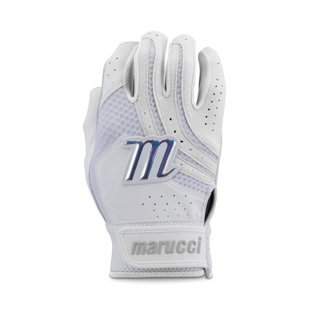 Designed specifically for fastpitch players, Marucci Medallion Fastpitch Batting Gloves are crafted with a genuine leather palm for enhanced grip and durability while a breathable, structured back-of-hand design and mesh-lined wrist cuffs provide comfortable support.